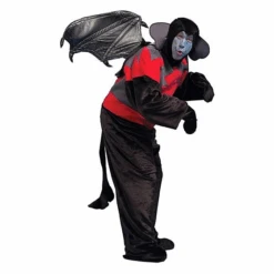 Includes: Long Black 3/4 length jacket, grey vest front with attached shirt front / dickey with string tie, matching pants, black stovepipe hat and beard.
